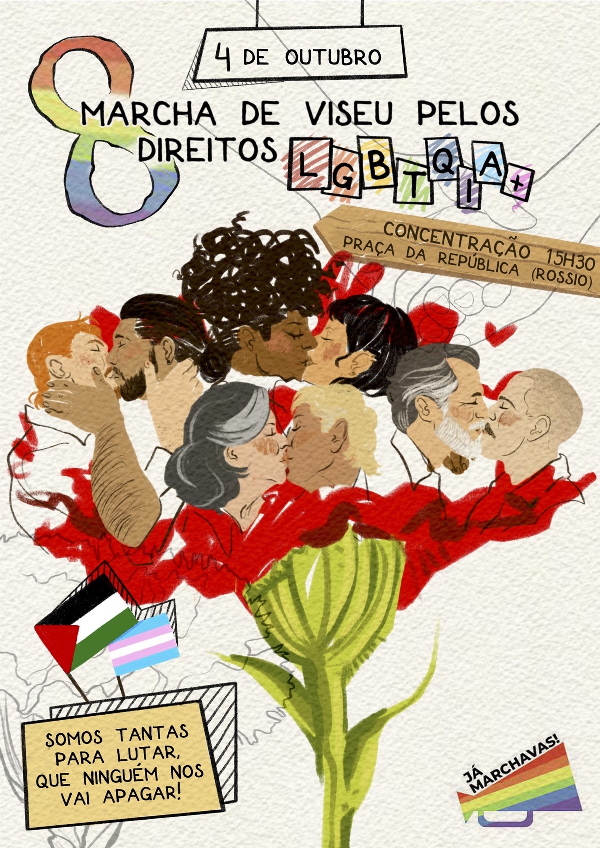 🏳️🌈 A Plataforma Já Marchavas convoca todas as pessoas para a 8.ª Marcha de Viseu pelos Direitos LGBTQIA+, que terá lugar no dia 4 de outubro de 2025. Apelamos à mobilização massiva, pois não há mais espaço para a neutralidade.