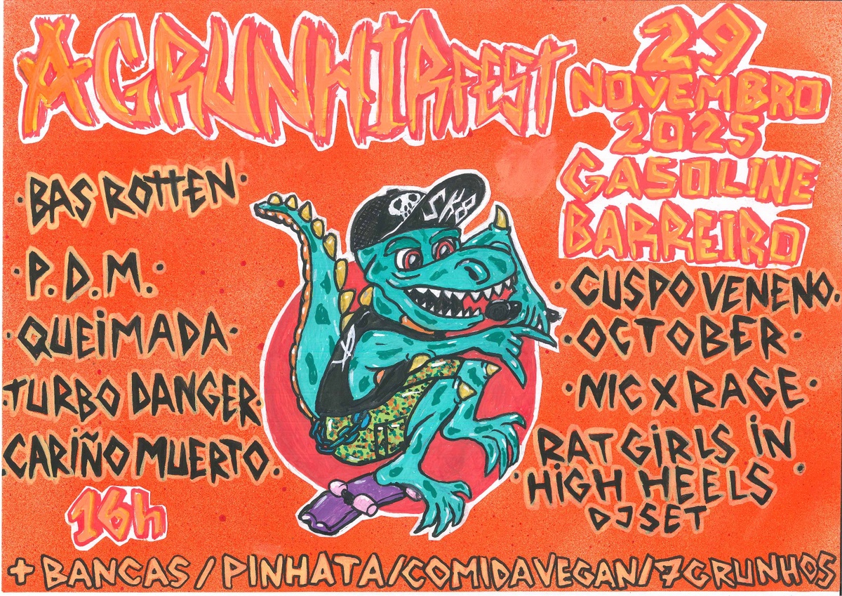 Este ano dia 29 de Novembro vai se realizar a 2º edição do Agrunhir Fest mais uma celebração ou não de aniversários de amiges nessa altura do ano que se ira realizar no espaço da associação cultural e desportiva Gasoline no Barreiro com concertos, piñata, comida vegan, skate entre outras cenas. Marquem já na agenda.