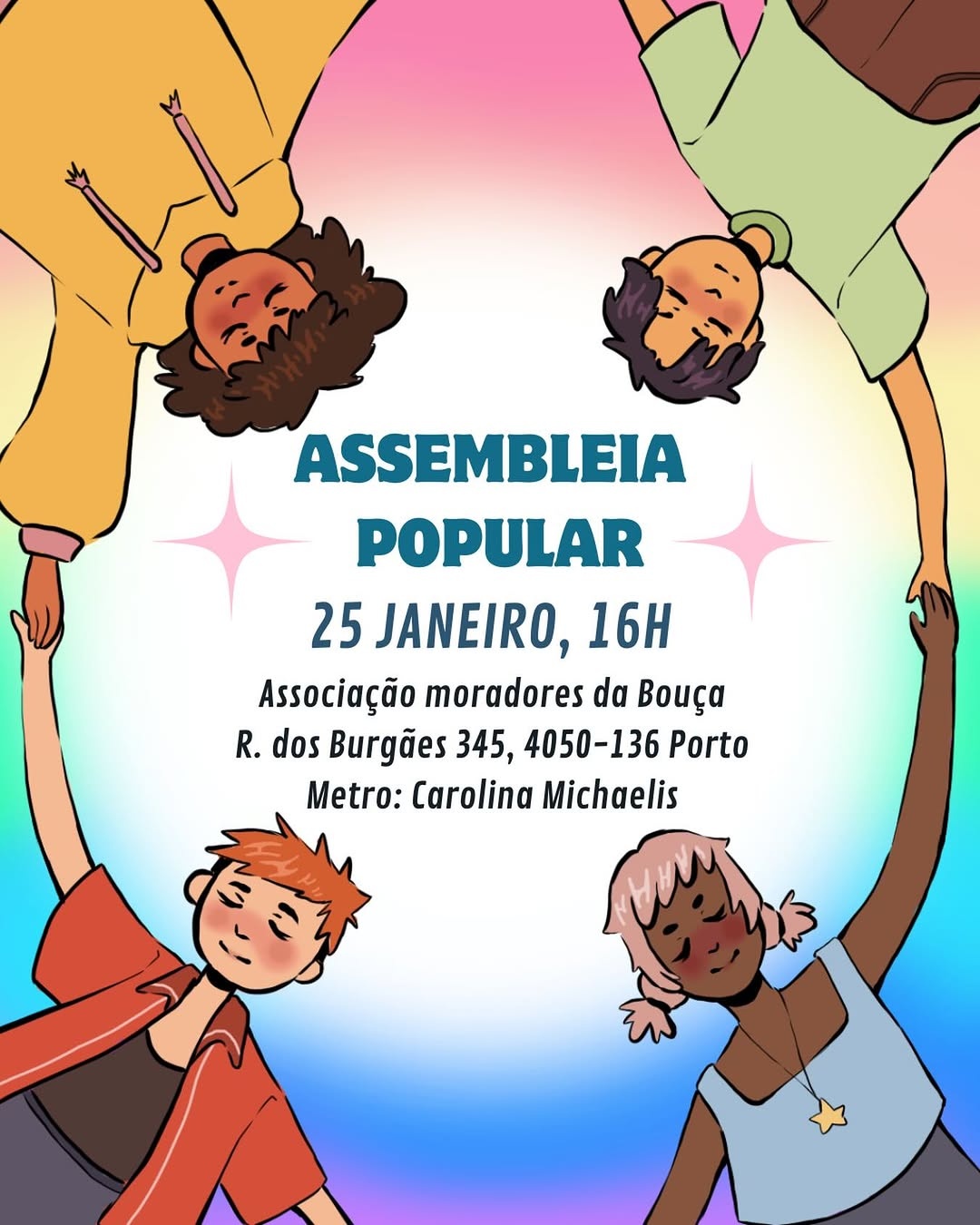 No próximo domingo, dia 25 de janeiro, voltamos a reunir-nos em Assembleia Popular, um espaço aberto, horizontal e coletivo, para pensar o presente e construir o futuro em conjunto.