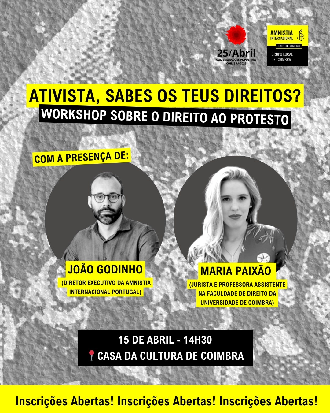 Participa no nosso workshop “Ativista, sabes os teus Direitos?”, no dia 15 de abril, às 14h30, na Casa Municipal da Cultura de Coimbra.