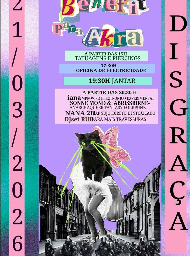 Come enjoy a queer evening in our Benefit for Akra (Autonomous housing project in Alentejo) this Saturday, 21st, in Disgraça 🦄