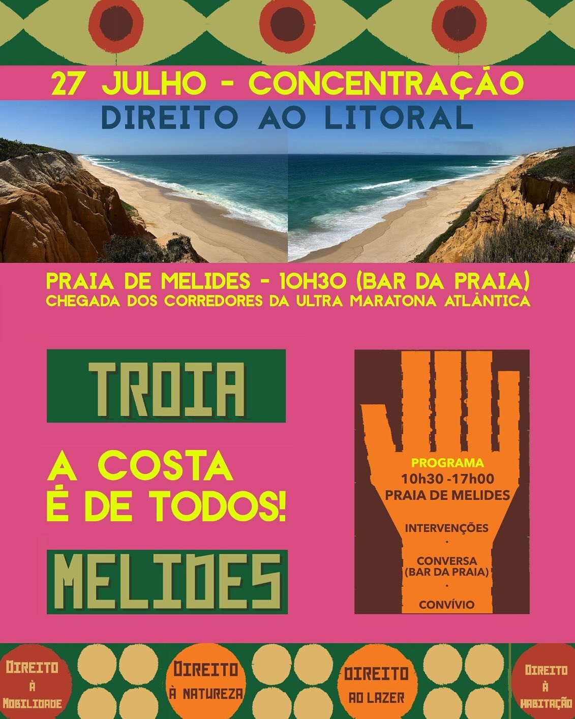 Ação, mobilização, concentração. 27 de Julho. Bar da praia de Melides, 10h30.