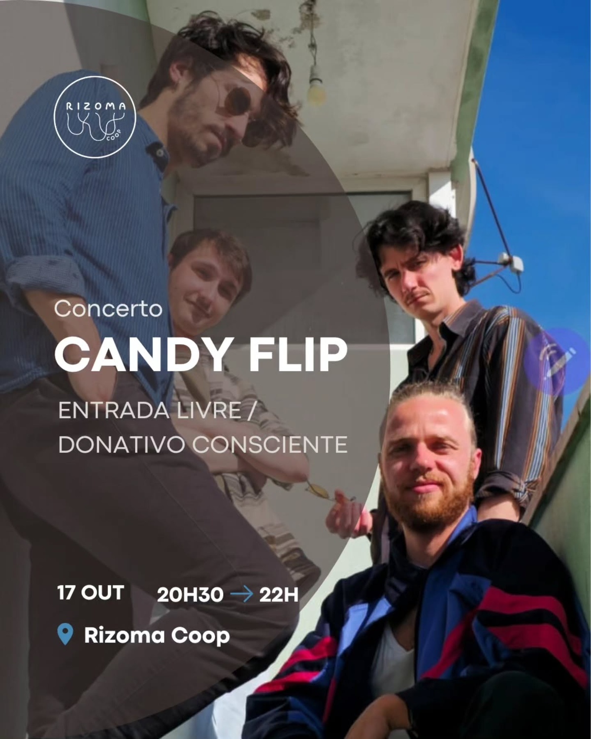 Candy Flip é uma banda nascida numa casa na Mouraria, Lisboa. A banda funde diferentes géneros musicais: ritmos roqueiros na bateria, linhas de baixo funk, riffs de rock and roll e melodias jazzísticas salpicadas por cima pelo trompete. Pela primeira vez na nossa Cave Cultural, Candy Flip traz uma mistura das suas próprias músicas e covers personalizados que tiram o teu rabo da cadeira para a pista de dança.