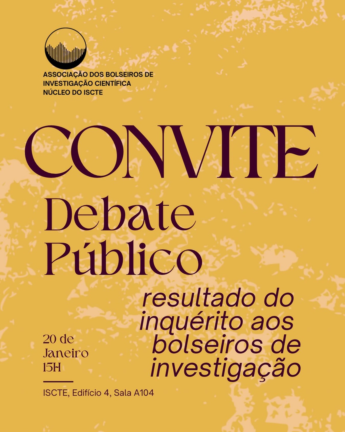 Convite Debate Público Resultado do inquérito aos Bolseiros de Investigação
