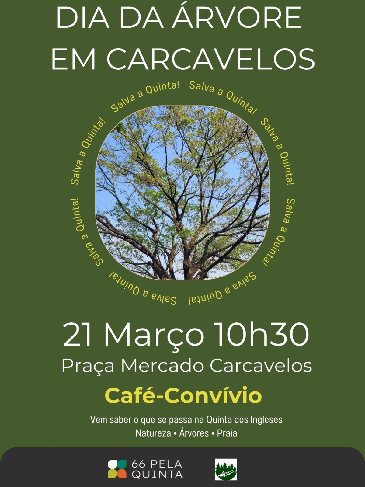Vem celebrar o dia da árvore connosco no próximo sábado 21 de março pelas 10h30 na Praça do Mercado de Carcavelos, junto da floresta que guerreiramente se mantém de pé.