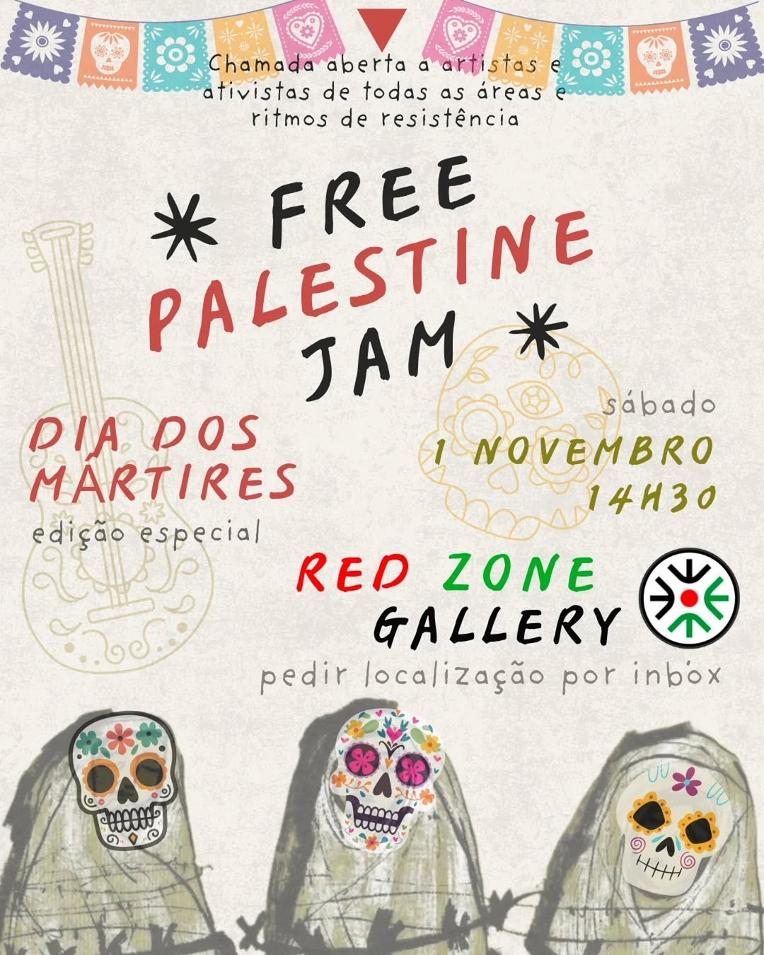 Não apenas por dedicarmos esta sessão para honrar a memória e sacrifício dos mártires do genocídio palestino, mas também porque a realizaremos na @redzone.gallery, a maior mostra de arte urbana feita por uma causa em Portugal, que trouxe mais de 50 artistas para exporem o genocídio palestino num edifício industrial em ruínas nos subúrbios de Lisboa, "das ruínas de Gaza para ruínas de Lisboa".