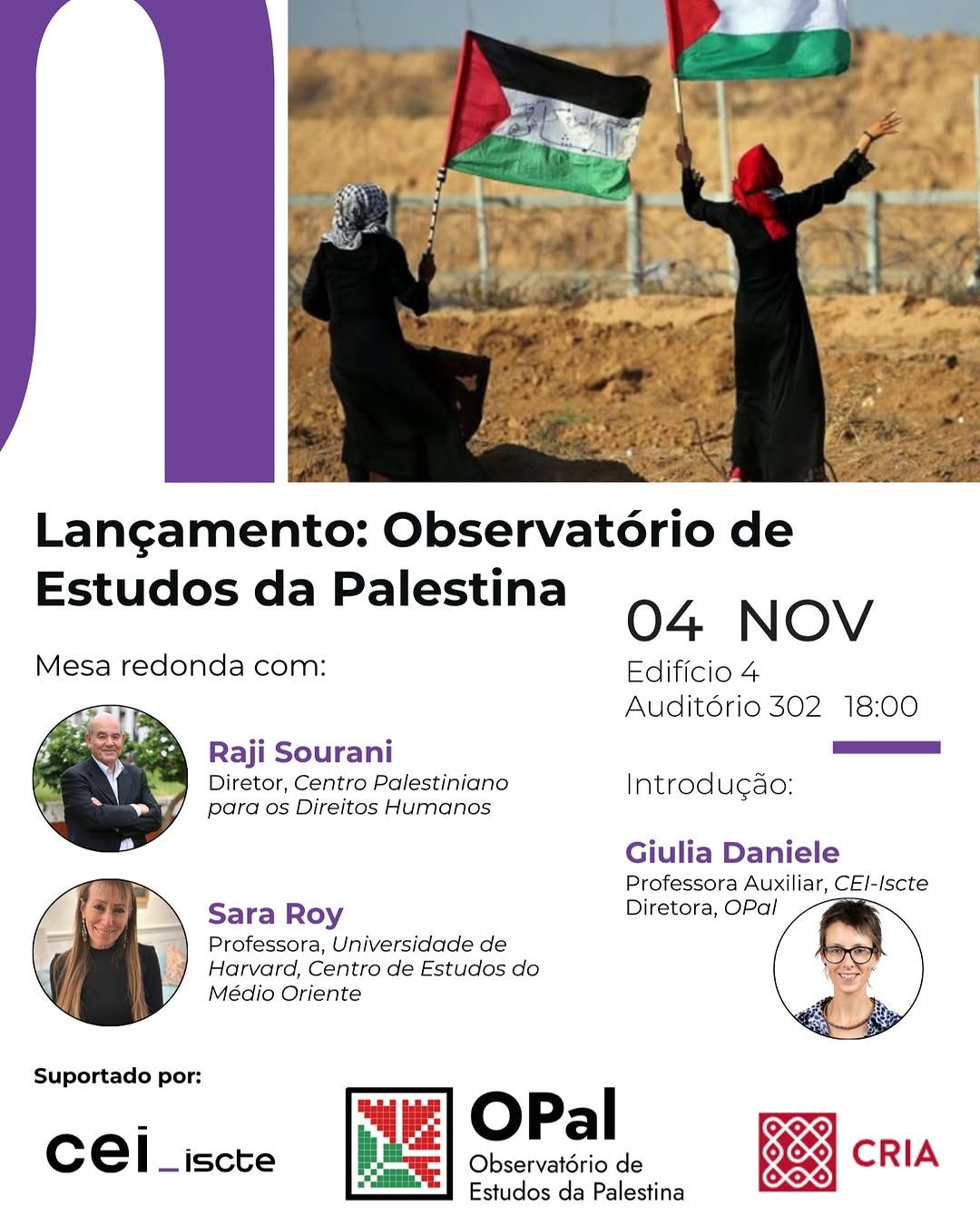 PT: O lançamento do Observatório de Estudos da Palestina (OPal) irá decorrer no dia 4 de novembro, entre as 18h00 e as 20h00 no ed 4, aud 302.