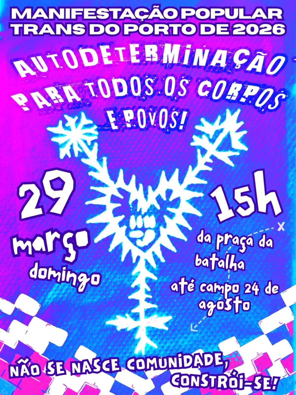 MANIFESTAÇÃO POPULAR TRANS DO PORTO 2026: Pela Autodeterminação dos Corpos e Povos!