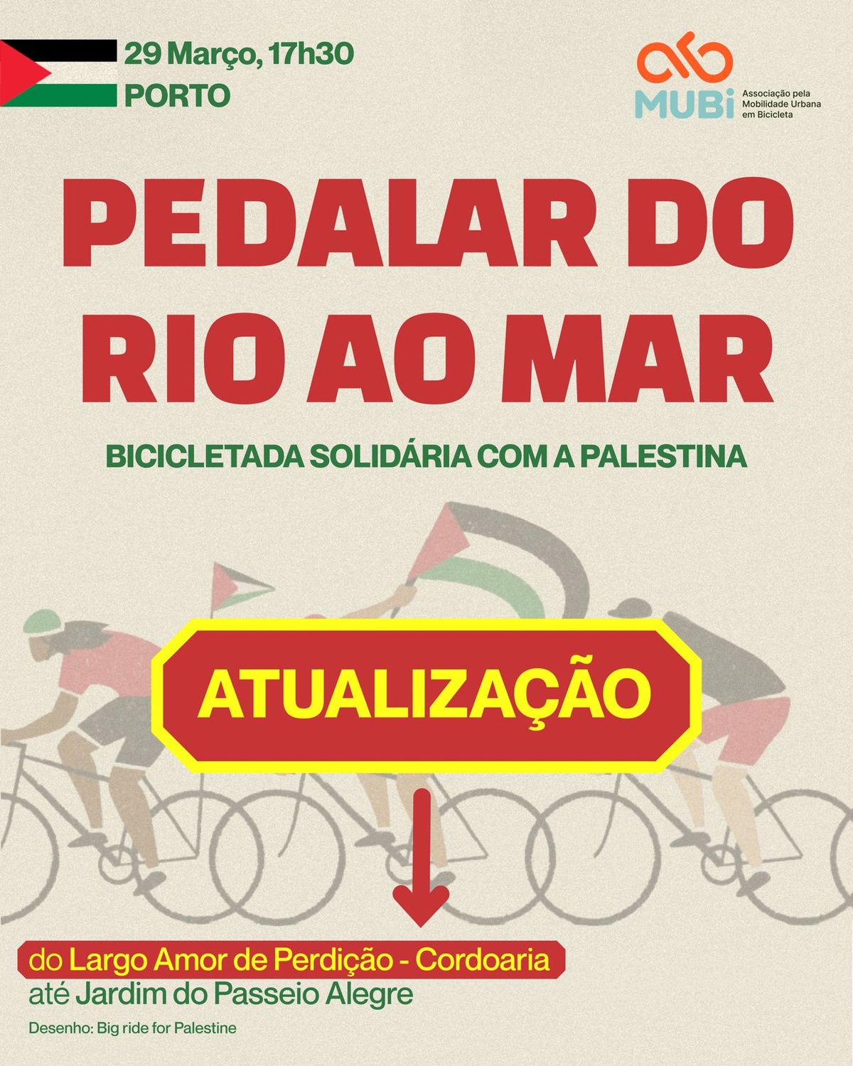 Dia 29 de Março vamos pedalar do rio ao mar em solidariedade com a Palestina.