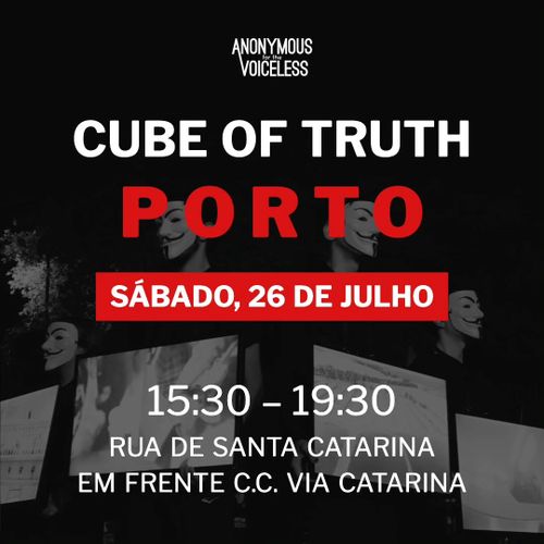 Cubo da Verdade Saturday, Jul 26, 03:30 PM-07:30 PM Saturday 26 July 19:30 Rua Santa Catarina Porto Rua de Santa Catarina, 4000-443 Porto, Portugal PortoVeganismoAnimal